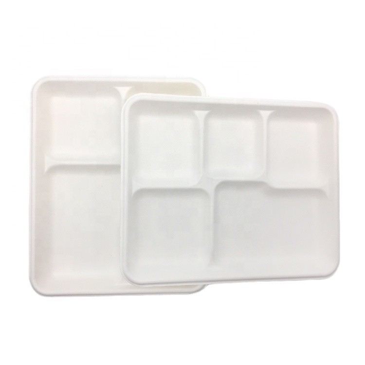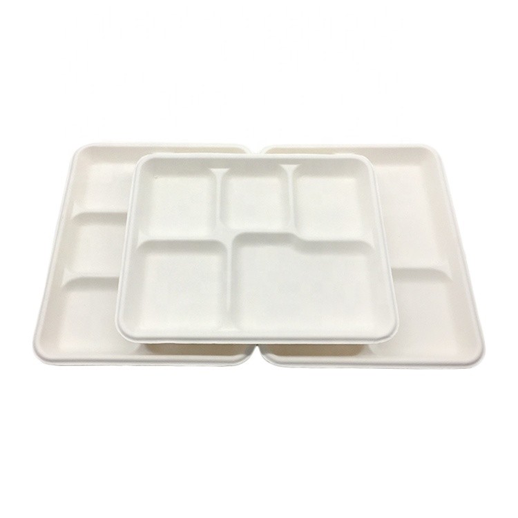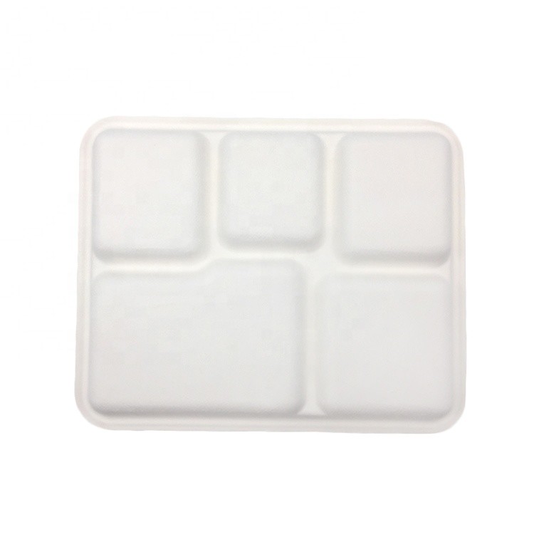 Custom Microwavable Biodegradable Bagasse Pulp 5 Compartment Tray