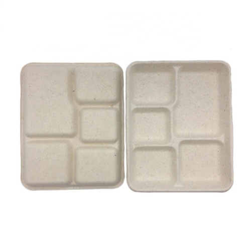 Custom Microwavable Biodegradable Bagasse Pulp 5 Compartment Tray