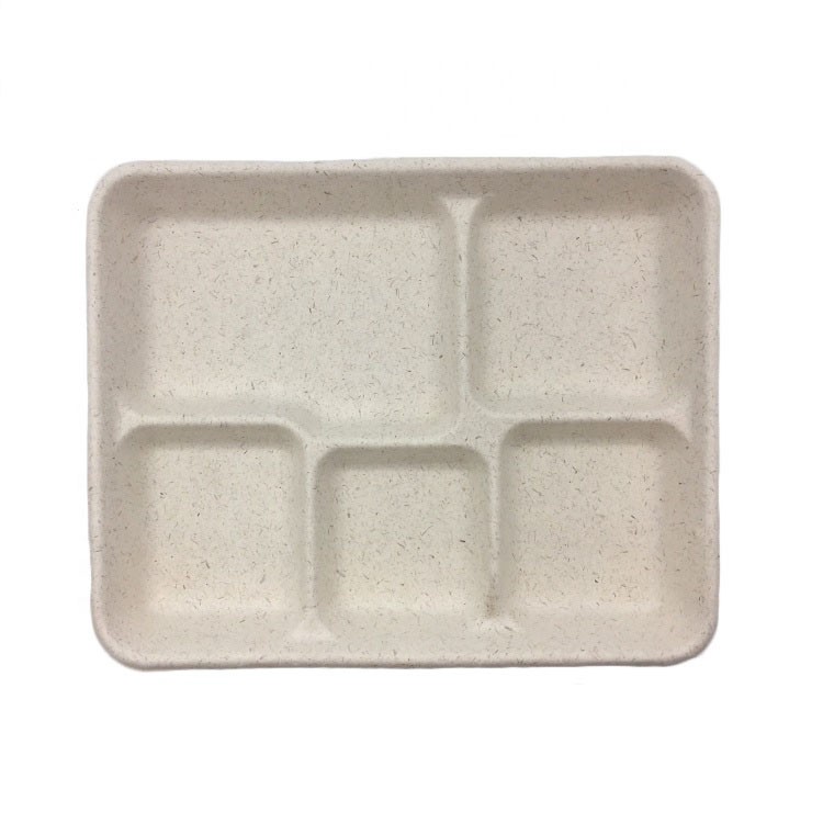 Biodegradable Tray Bagasse 5 Compartment Eco Tray For Lunch