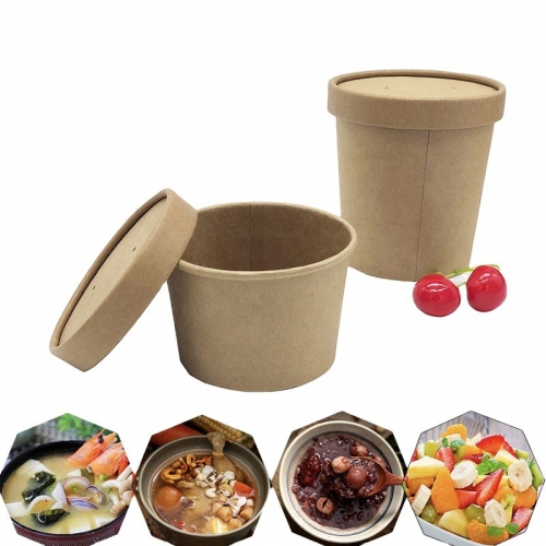 8OZ,12OZ,16OZ,24OZ,32OZ Kraft Soup Paper Bowl with Kraft Paper Lid