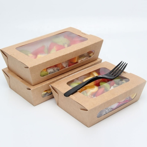 Biodegradabe microwave rectangle brown kraft party lunch food soup paper salad bowl