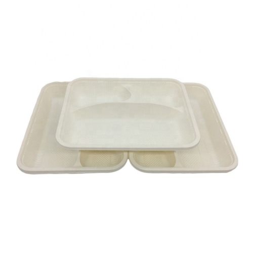 Disposable Cornstarch 5 Compartment Biodegradable Lunch Tray For School