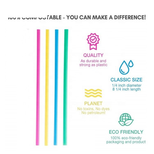 Custom 100% biodegradable cornstarch PLA disposable straw eco friendly 9mm 8mm plastic straws