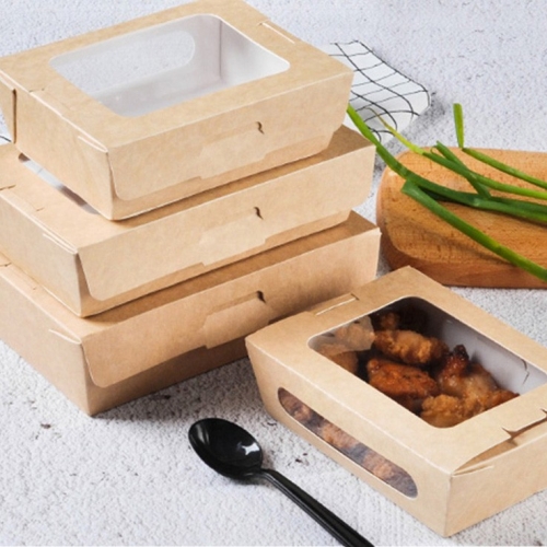 Biodegradabe microwave rectangle brown kraft party lunch food soup paper salad bowl