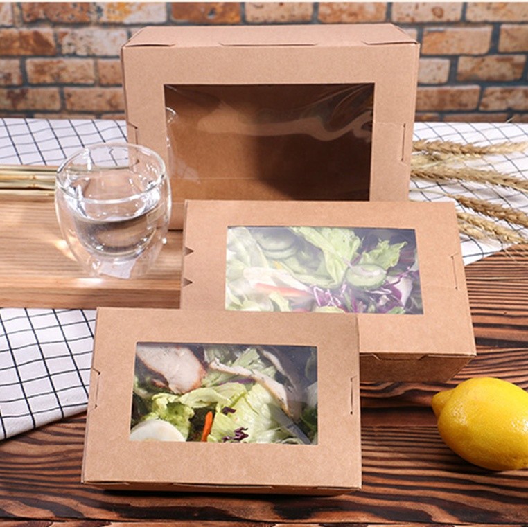 Eco-friendly Disposable Kraft Paper Salad Bowl With Lid