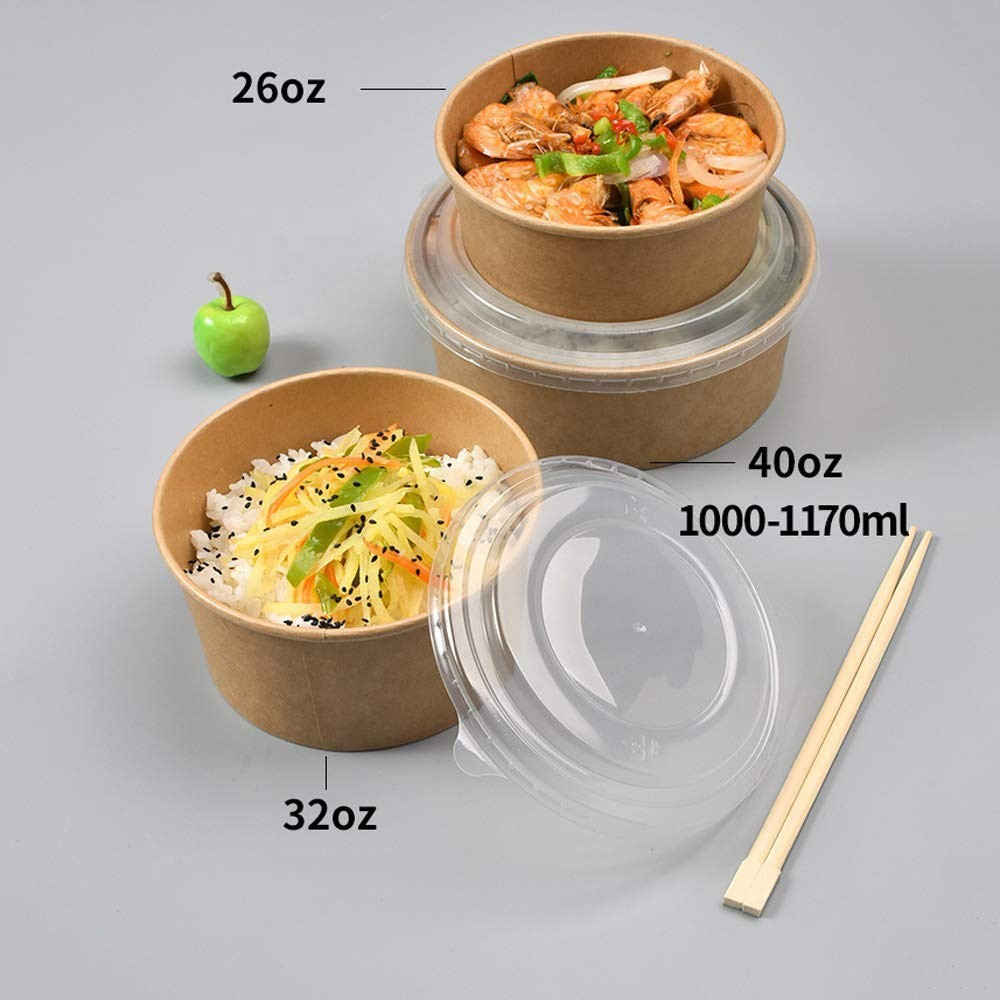 Take Away Paper Container Salad Bowls Disposable Kraft Paper Round Bowl