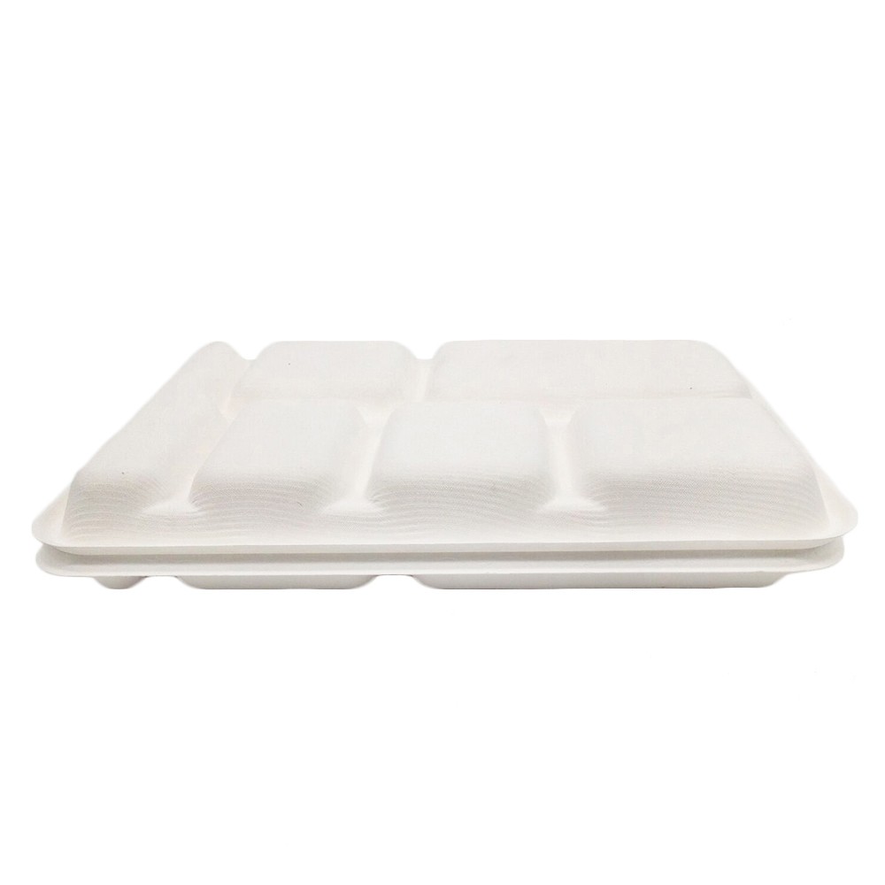 Custom Microwavable Biodegradable Bagasse Pulp 5 Compartment Tray